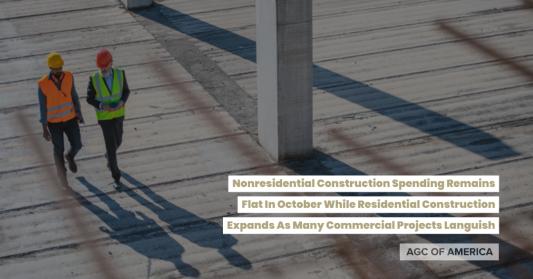 The construction industry’s fortunes continued to diverge in October, as residential construction expanded again while nonresidential construction remained largely unchanged from a month ago and is down compared to last year, according to an analysis of new federal construction spending data by the Associated General Contractors of America. Association officials said that demand for nonresidential construction is being hit by private sector worries about the coronavirus, tighter state and local budgets and the lack of new federal pandemic relief measures.