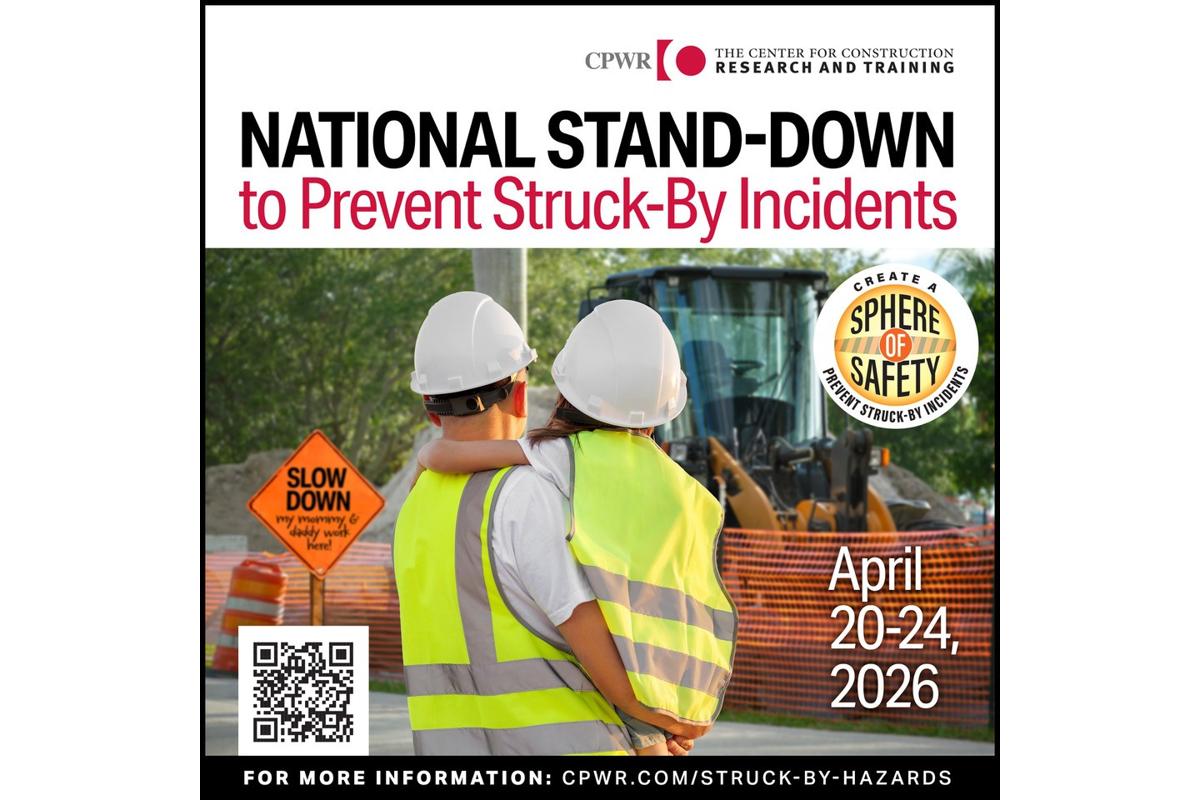 The National Stand-Down to Prevent Struck-By Incidents is held annually during National Work Zone Awareness Week (NWZAW) to raise awareness of struck-by hazards, which may include falling and flying objects, vehicles and heavy equipment, and crane swing hazards. These incidents are the number one cause of nonfatal injuries in construction and the leading...