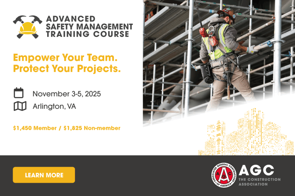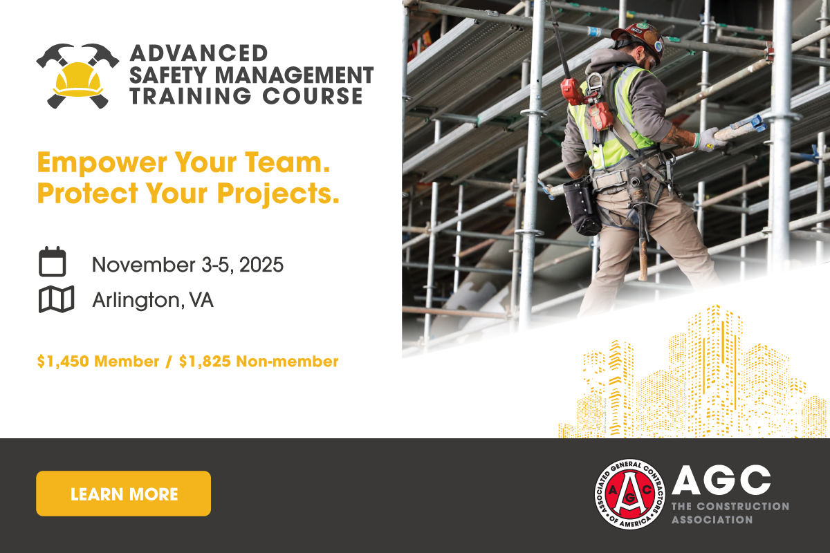 Take your construction safety skills to the next level with AGC’s Advanced Safety Management Training Course (ASMTC) – a unique three-day program designed for professionals ready to manage – or who already manage – company-wide safety programs. What You’ll Gain Advanced tactics for field and corporate safety management Strategies to...
